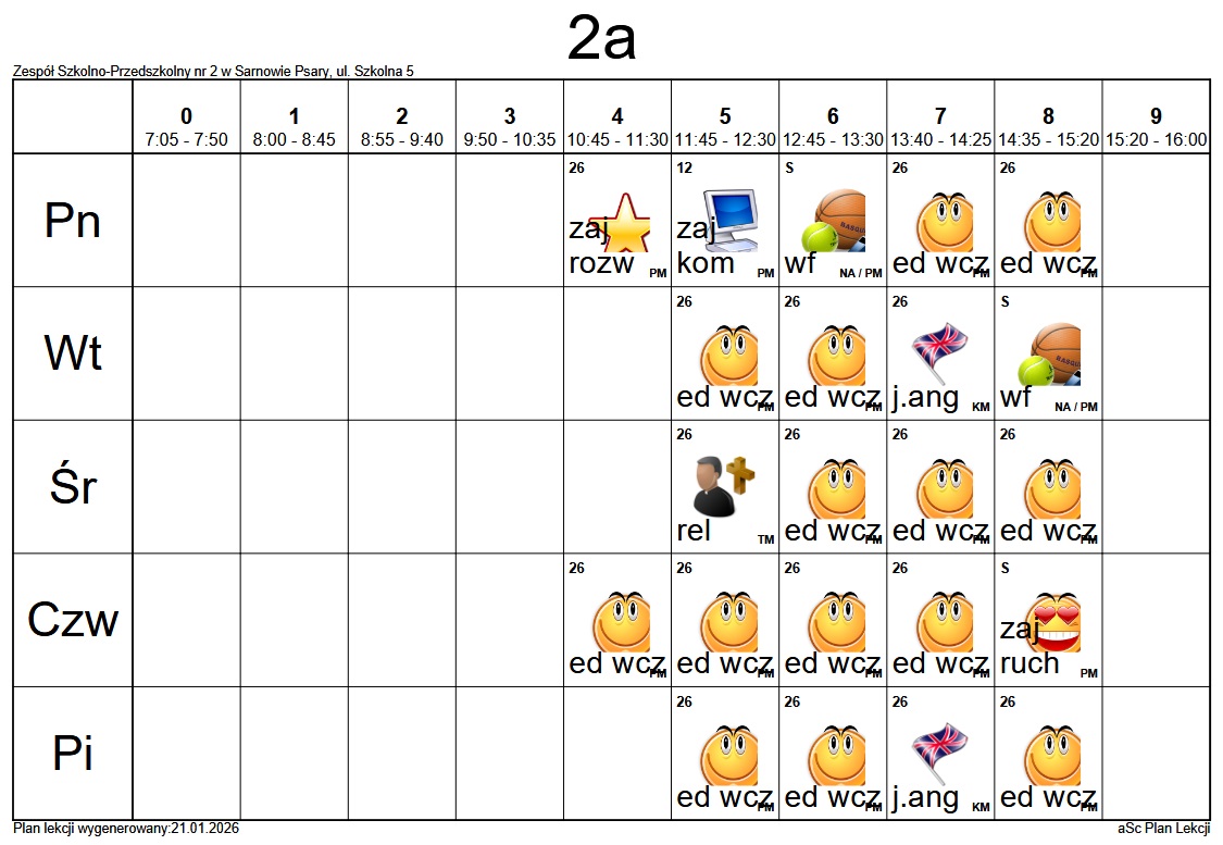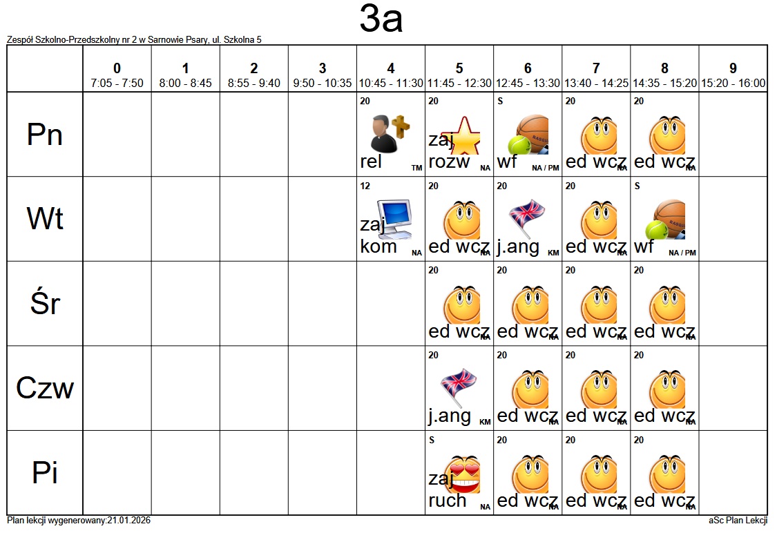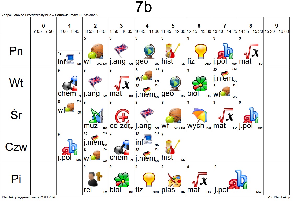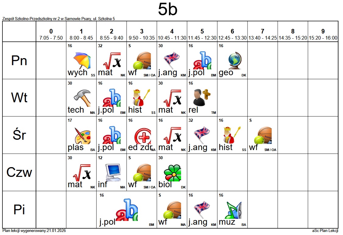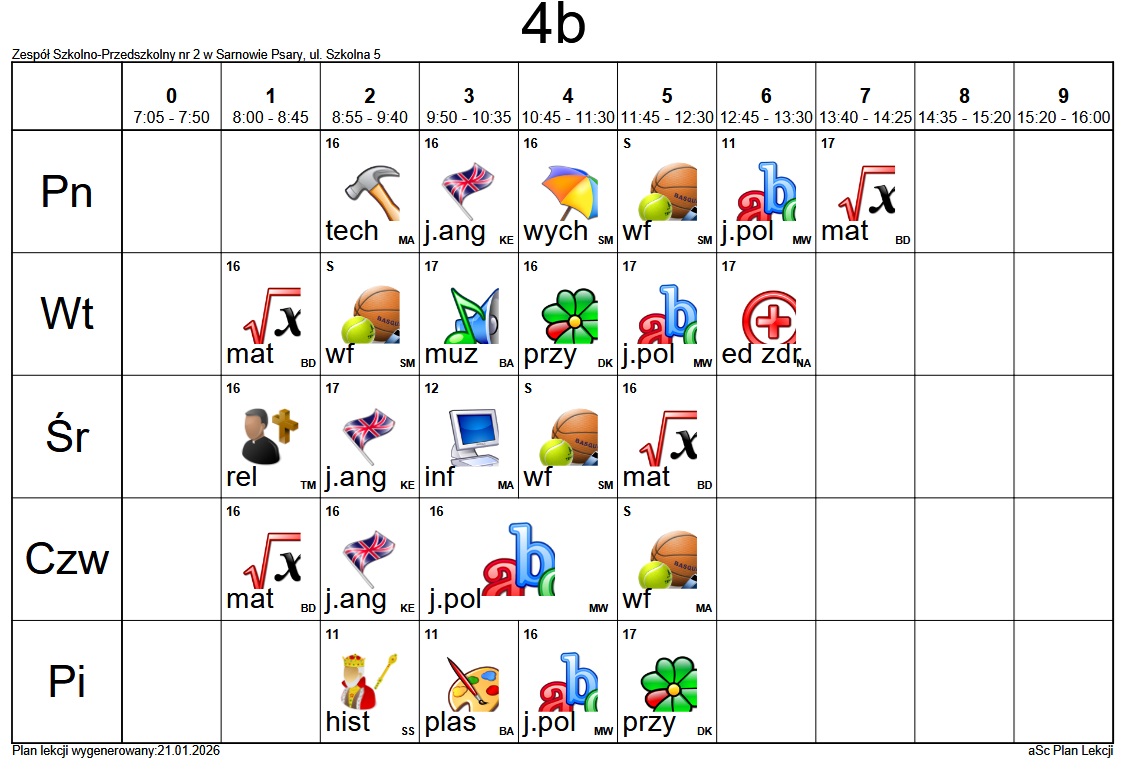 Plan lekcji Szkoły Podstawowej im. Alfreda Szklarskiego w Sarnowie