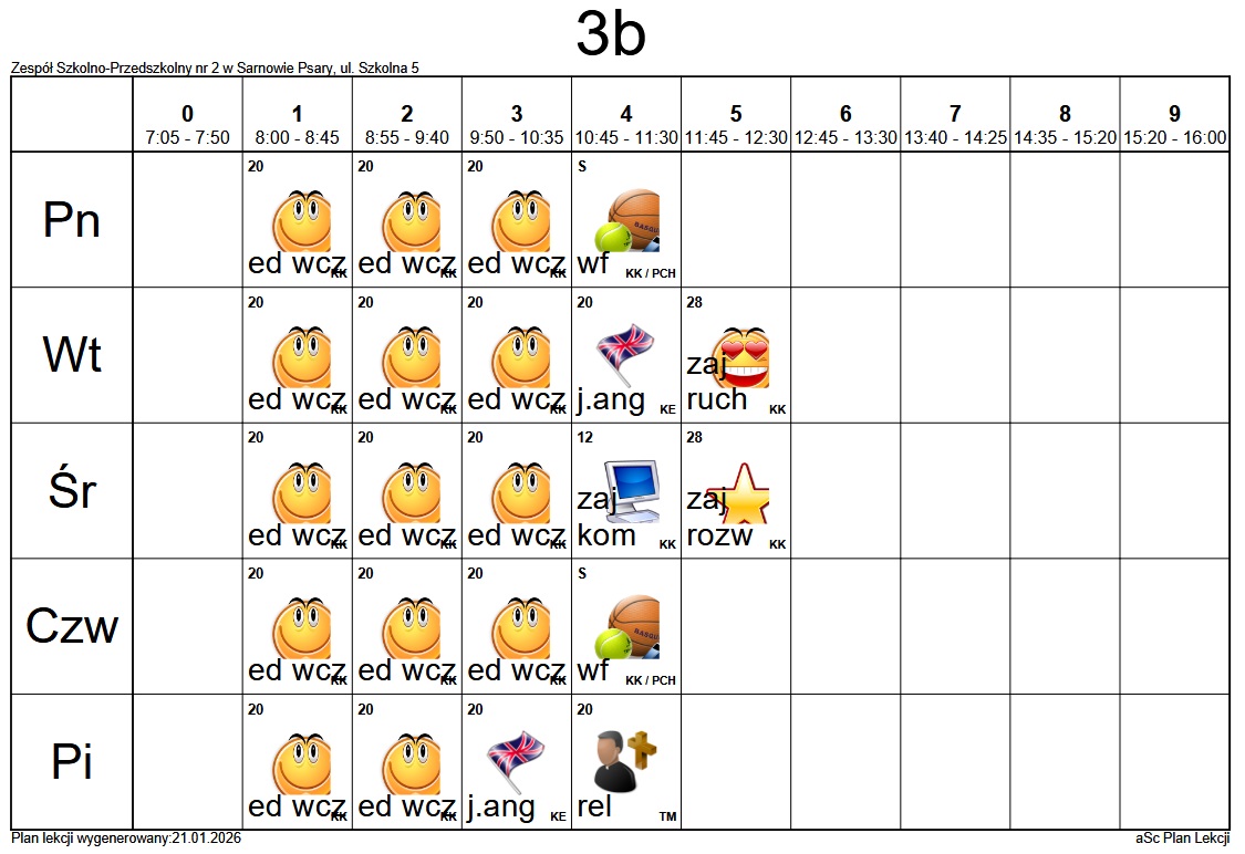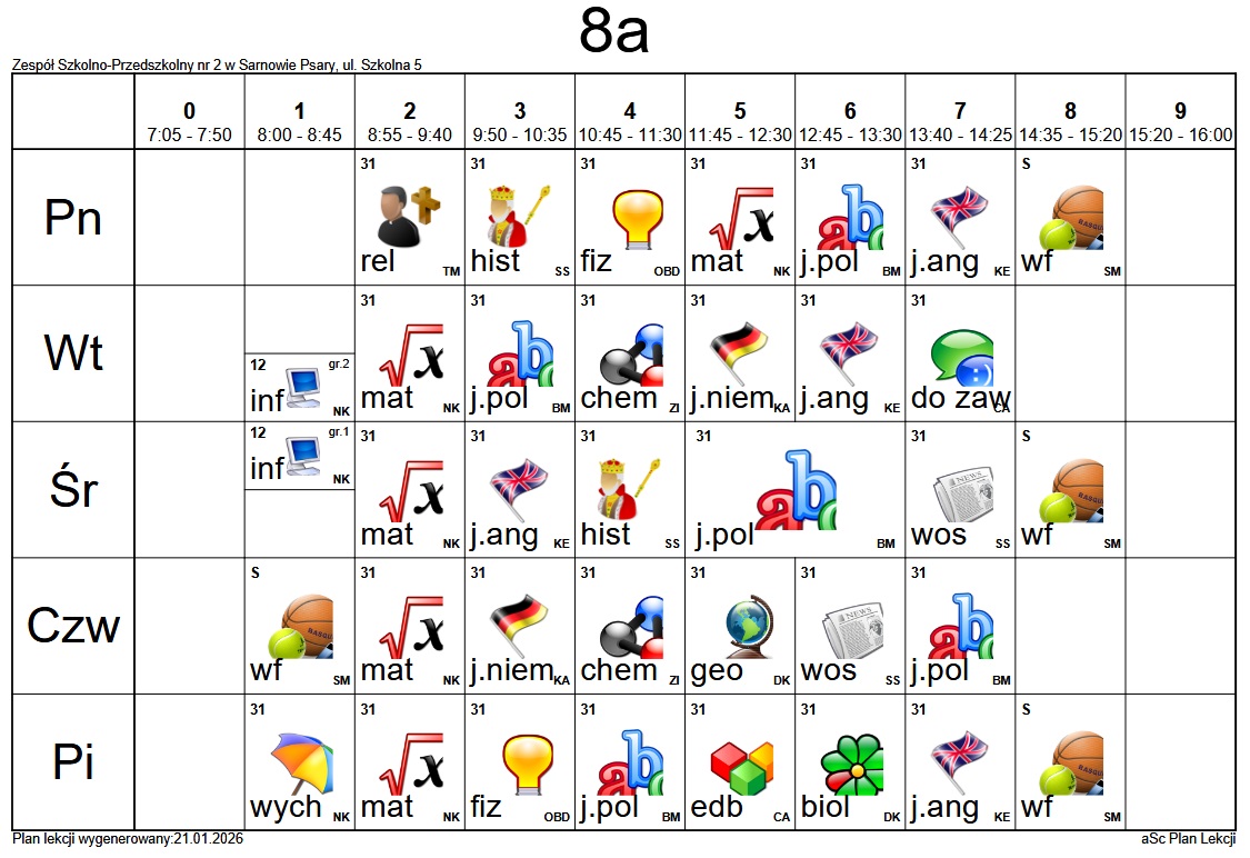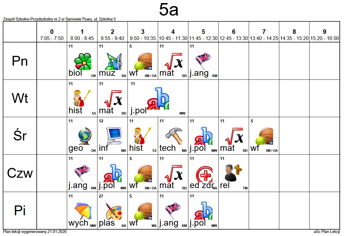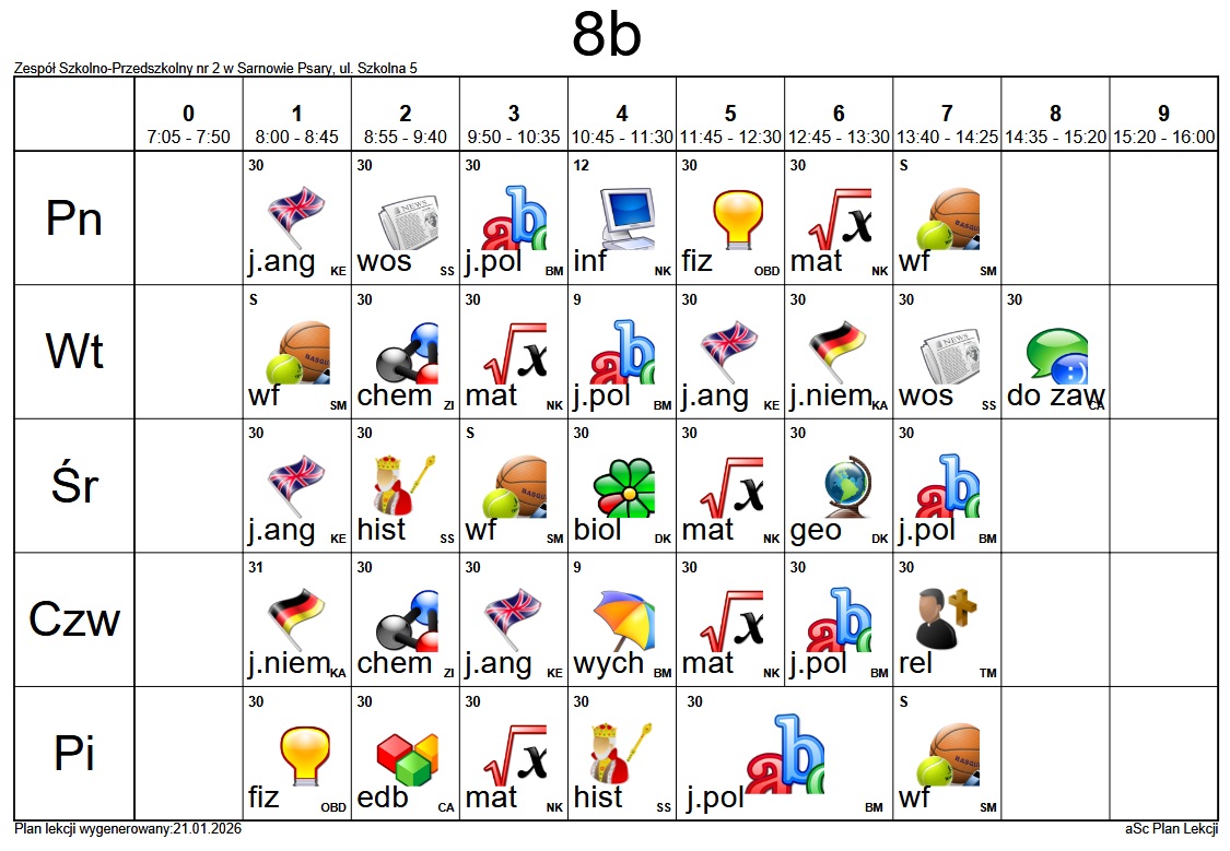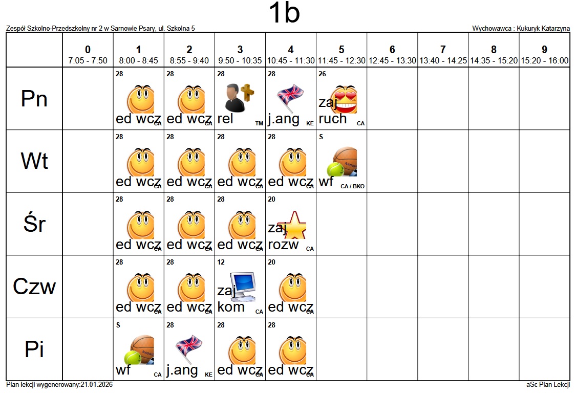 Plan lekcji Szkoły Podstawowej im. Alfreda Szklarskiego w Sarnowie