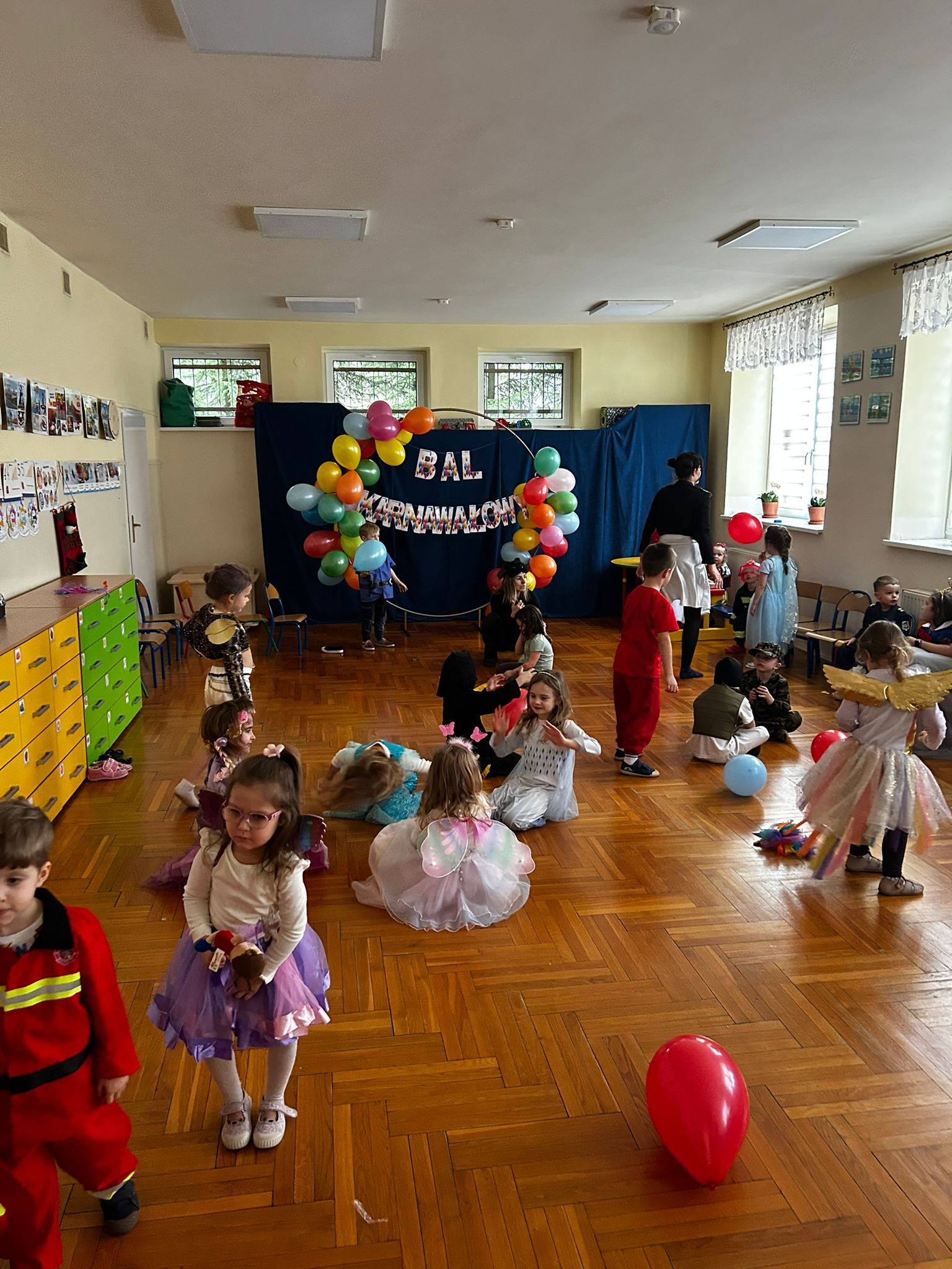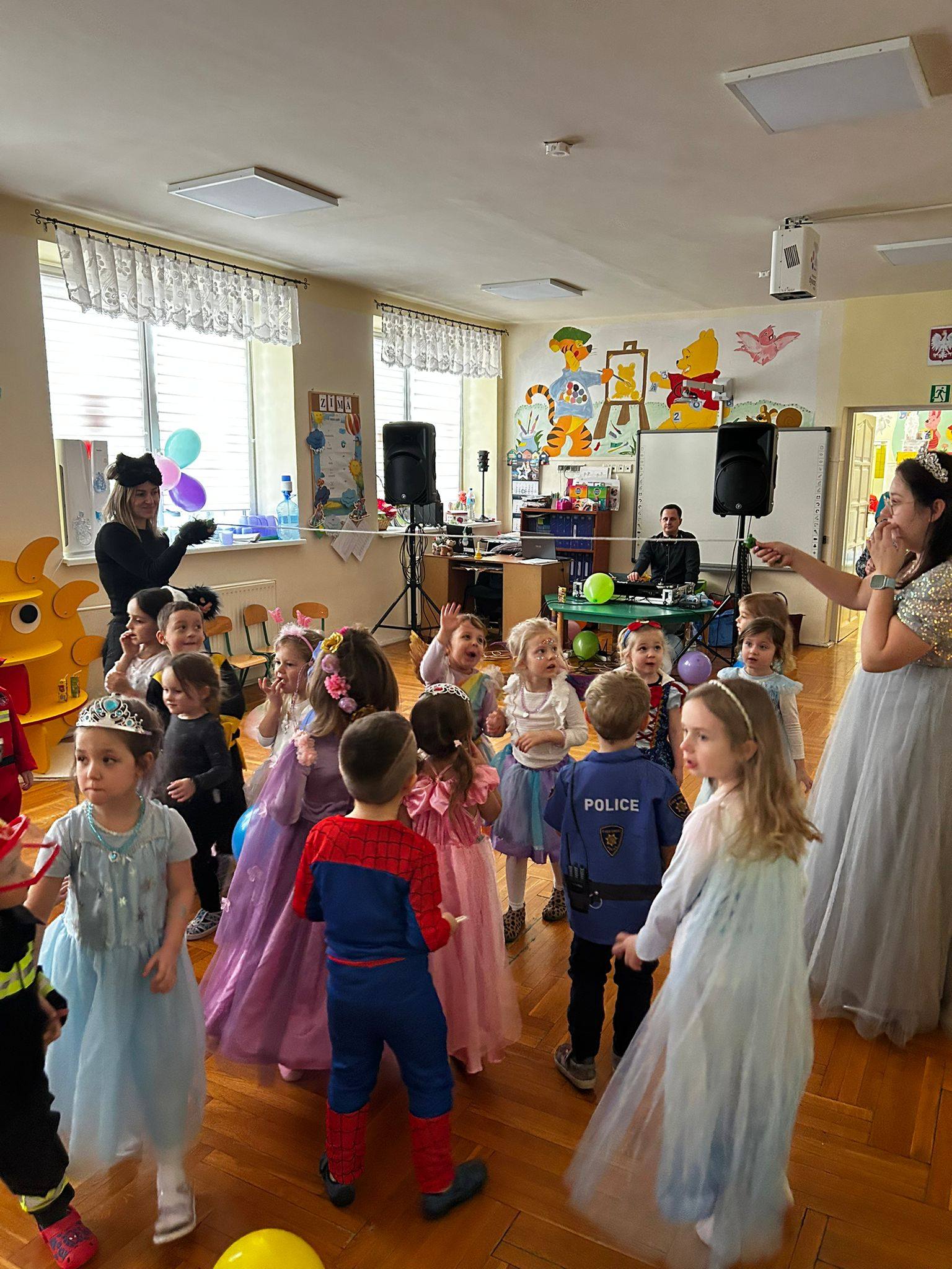 Podczas balu nie zabrakło wspólnych tańców, zabaw ruchowych, kolorowych tatuaży oraz słodkiego poczęstunku, które dostarczyły przedszkolakom wielu pozytywnych emocji. Była to doskonała okazja do integracji, rozwijania kreatywności oraz po prostu – dobrej zabawy.