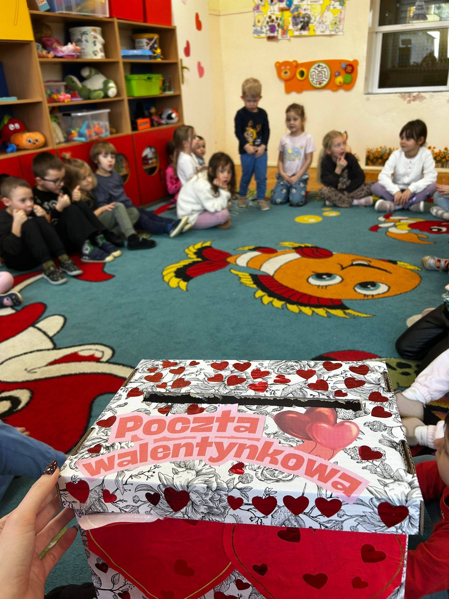 . Przedszkolaki z ogromnym zaangażowaniem przygotowywały kartki dla swoich koleżanek, kolegów oraz pań. Wrzucały je do specjalnej skrzynki, a następnie „listonosze” dostarczyli walentynki do adresatów. Radości, uśmiechów i miłych słów nie było końca!